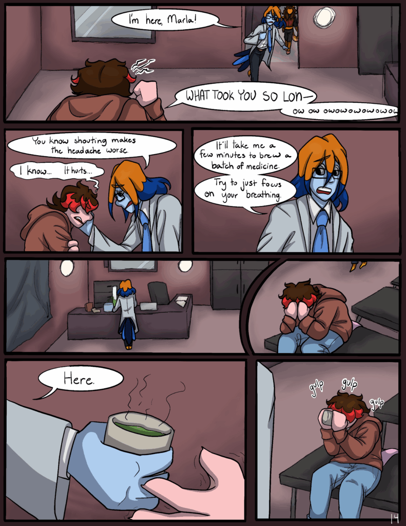 hi gang, hopefully this should be the last week of only one update. sadly no page on thursday again, but next week i'm hoping to be able to return to our regular schedule and hopefully start the webtoons updates for this chapter as well
